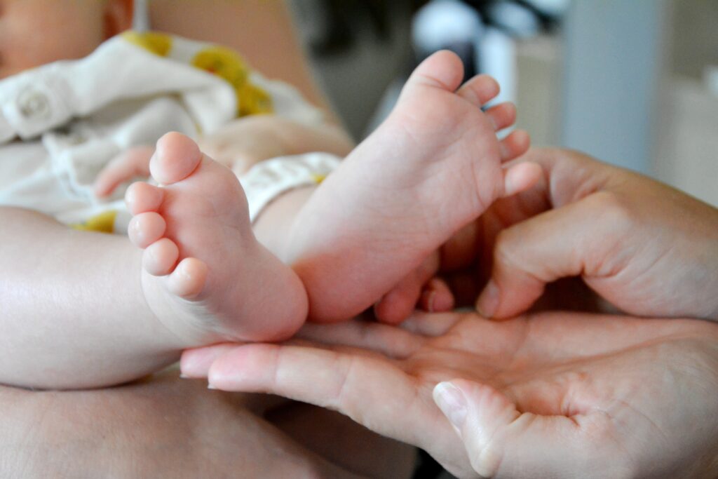 - Ustaw dziecko w pozycji stojącej – stopy powinny być obciążone.